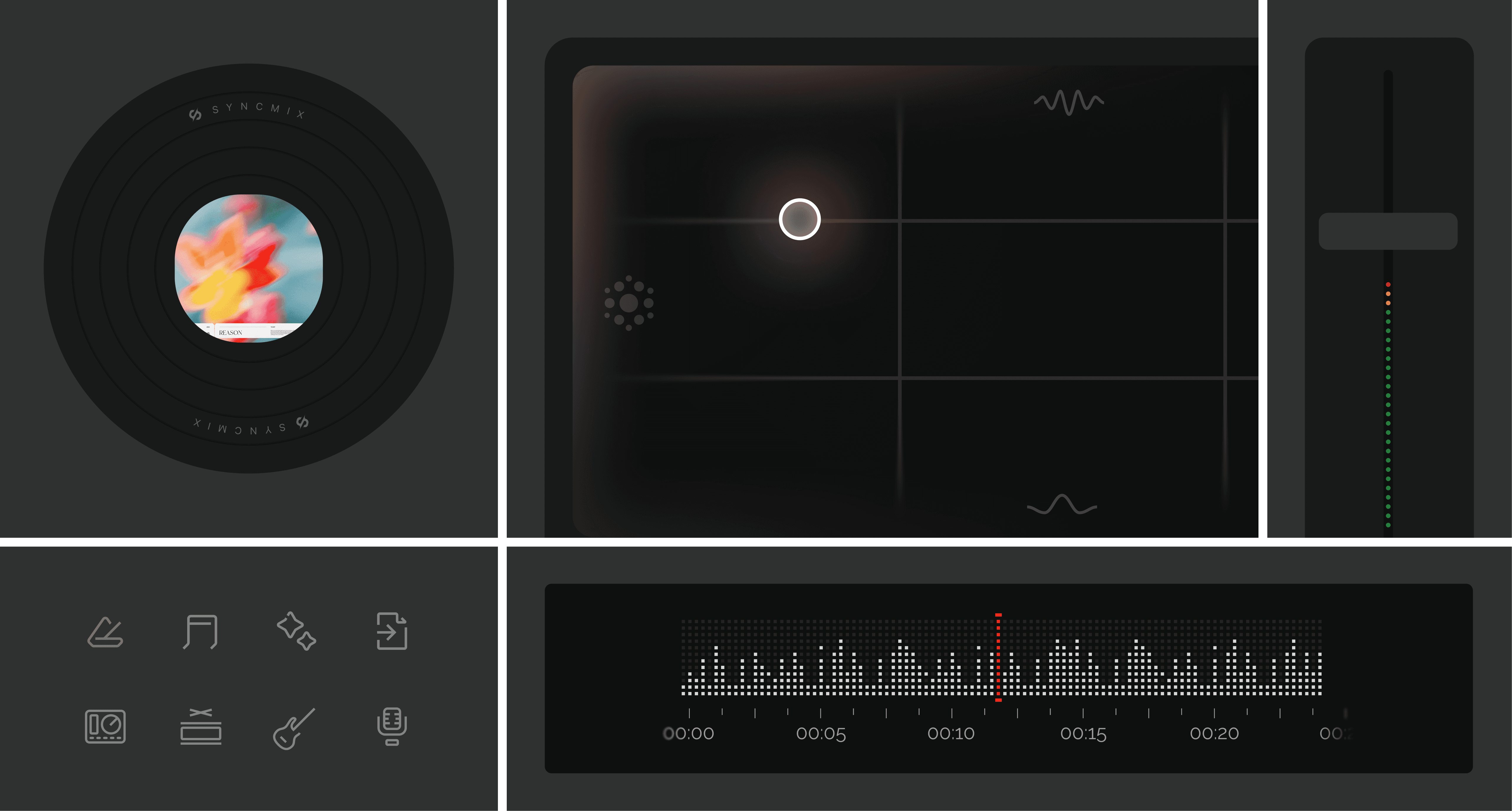 Typography defines a clear hierarchy across headers, body text, and captions, ensuring readability in low-light conditions and during long creative sessions. Iconography is reduced to essential forms and built on a consistent grid, remaining clear and recognizable without distracting from the interface. The color system is intentionally restrained. A neutral primary palette provides visual stability, while secondary accent colors are used sparingly to signal state changes, emphasis, and interaction feedback. This approach ensures clarity without visual noise, reinforcing control and focus throughout the experience.