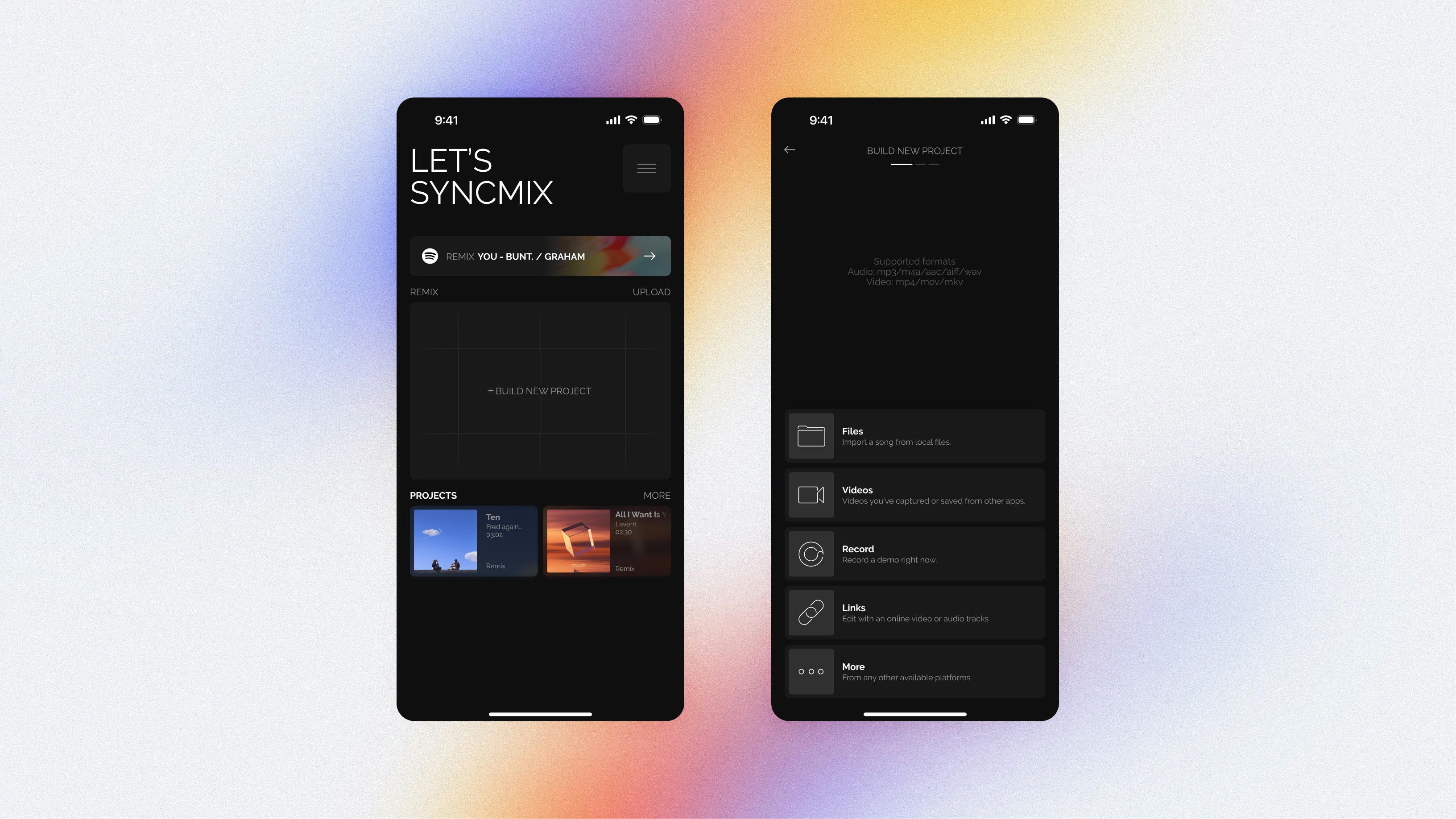 SyncMix is designed to reduce the friction between inspiration and action. Instead of asking users to configure tracks or templates, this screen lets them begin with what they already have—a sound.